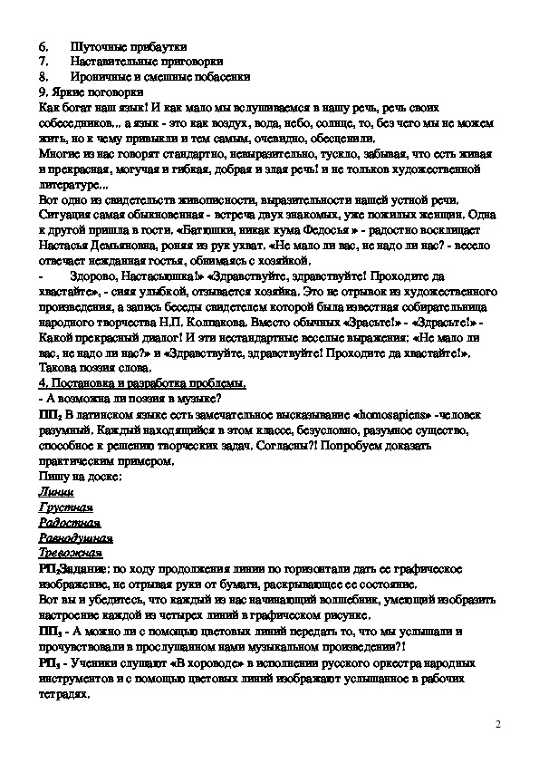 Занятие 1, 2. Тема: Введение. Поэзия слова и музыки.