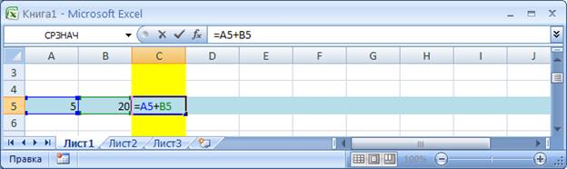 Вводить информацию можно либо непосредственно в выделенную ячейку, либо в строку формул.