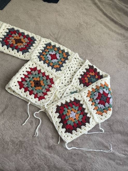 Очень эффектно выглядит изделие, связанное из квадратов разных цветов. В таком случае подбор цвета может быть решающим в работе, особенно если она выполнена по простой схеме «бабушкин квадрат».