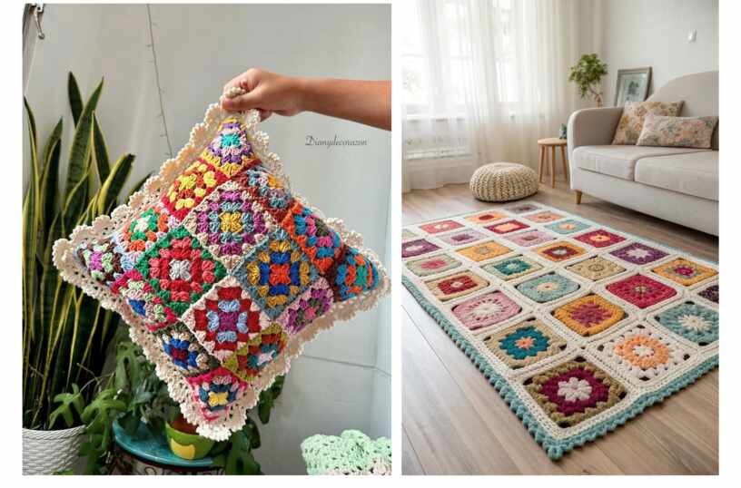 Изначально бабушкин квадрат использовали как удобный способ использовать остатки пряжи, которые жалко было выбрасывать. Однако сегодня он стал настоящей иконой рукоделия и моды. Из таких мотивов вяжут пледы, аксессуары, декоративные подушки, стильные сумки и одежду.