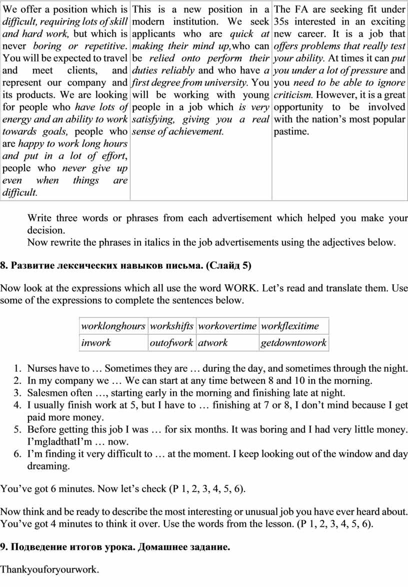 Now think and be ready to describe the most interesting or unusual job you have ever heard about. You’ve got 4 minutes to think it over. Use the words from the lesson. (P 1, 2, 3, 4, 5, 6).
