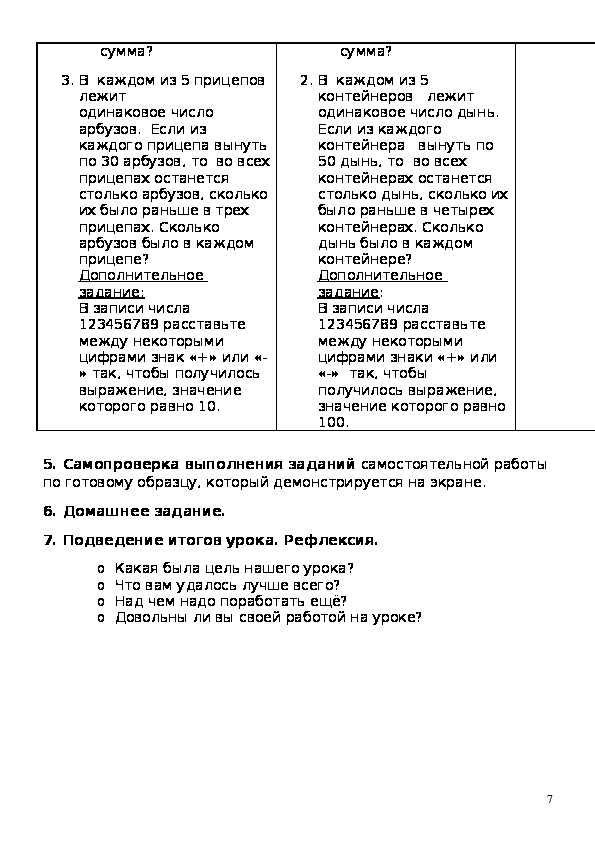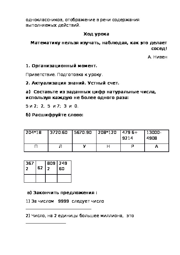 Цель деятельности учителя: создать условия для организации и проведения повторения правил действий с многозначными числами.