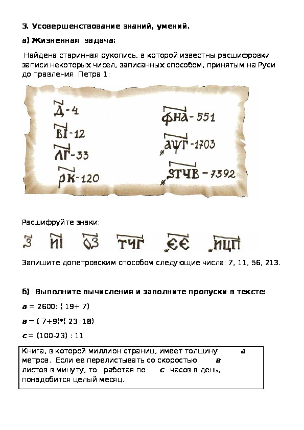 Запишите допетровским способом следующие числа: 7, 11, 56, 213.