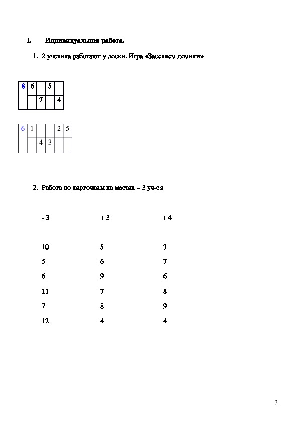 1. 2 ученика работают у доски. Игра «Заселяем домики»