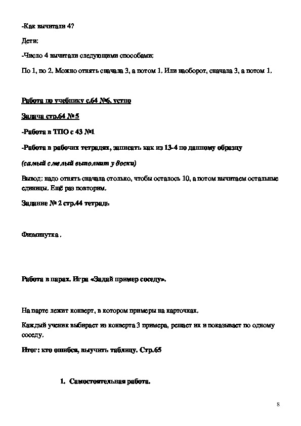 Вывод. Самый удобный случай вычитания 4, когда 4 представляем как 2 и 2.