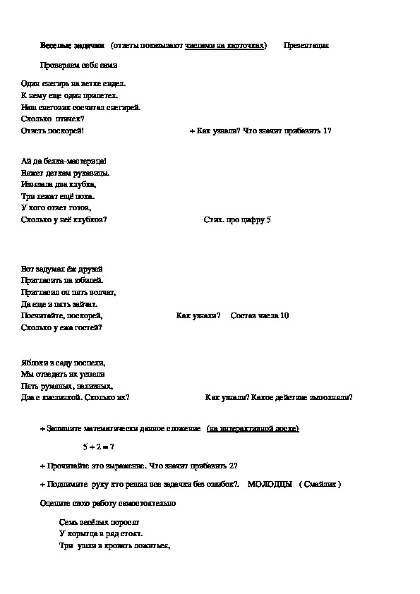 и записывать результат, закреплять знание нумерации чисел первого десятка.
