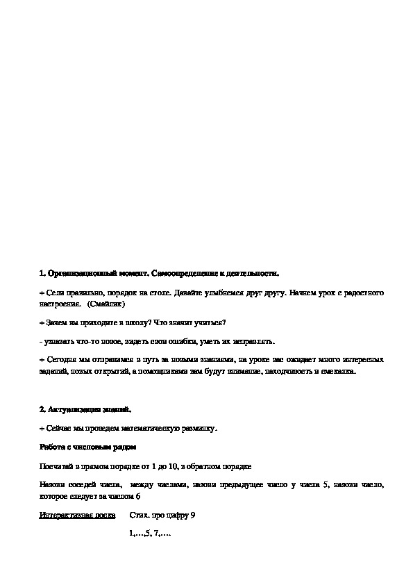 Урок математики в 1 классе
