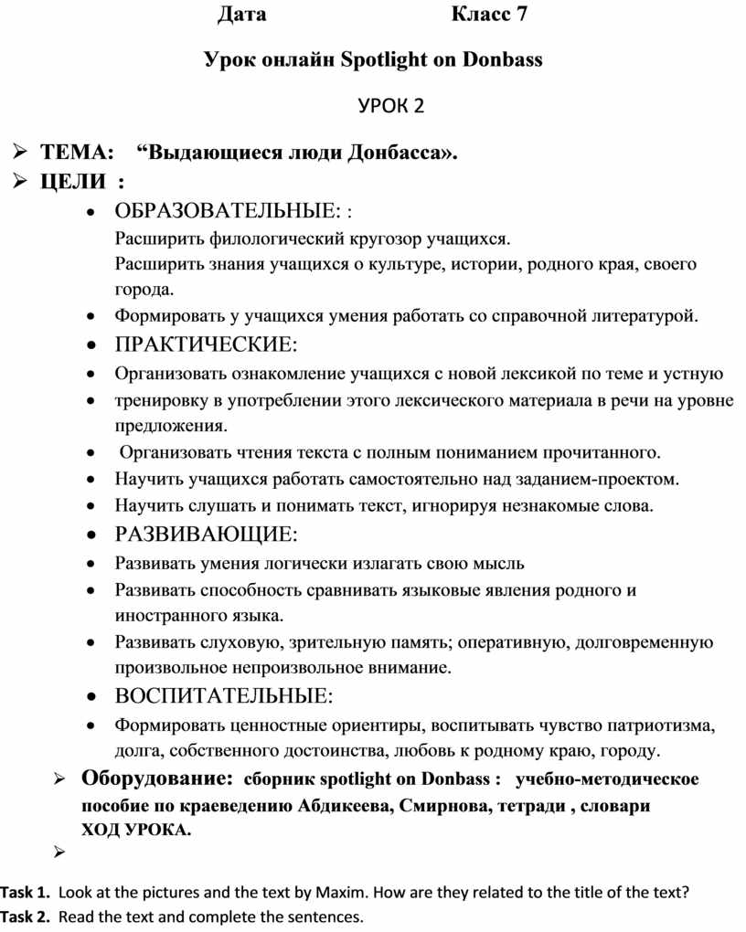 Ø Оборудование: сборник spotlight on Donbass : учебно-методическое пособие по краеведению Абдикеева, Смирнова, тетради , словари ХОД УРОКА.