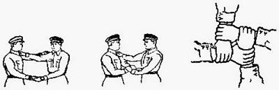 Для этого образуется сидение скрещиванием двух, трех или четырех рук носильщиков.
