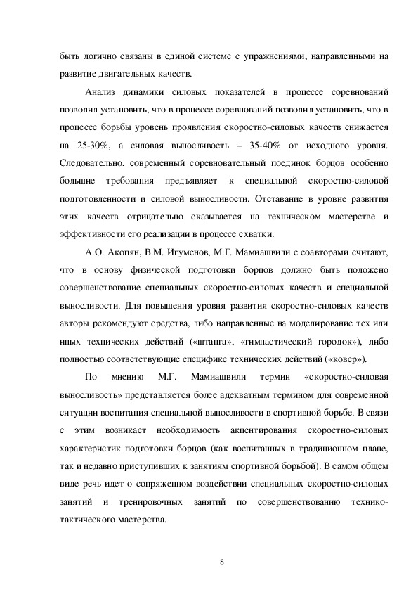 силовых характеристик подготовки борцов (как воспитанных в традиционном