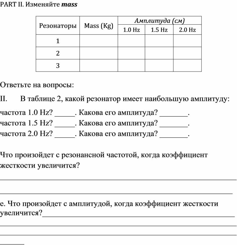 е. Что произойдет с амплитудой, когда коэффициент жесткости увеличится?____________________________________________________________________________________________________________________________________________________________________________