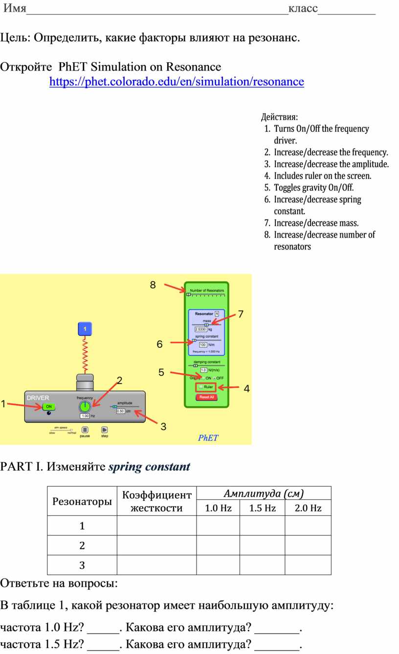 Откройте PhET Simulation on Resonance