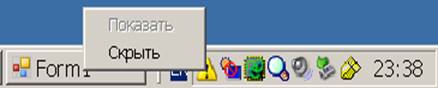 Так как контекстное меню было установлено для ЭУ notifyIcon1, то двойной щелчок мышки на иконке в области уведомлений выводит пунк- ты "Показать" и "Скрыть":