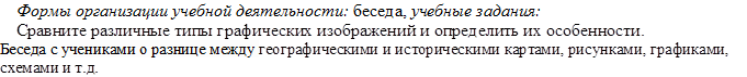 Форма организации учебной деятельности: беседа с постановкой проблемы урока с использованием интересных фактов и демонстрацией примеров. Конкретная учебная установка: учитель задаёт вопрос для обсуждения обучающимся «Какие графические редакторы вы знаете? Может кто-то уже работал в таких редакторах? Вопросы учителя классу: 1. Какое применение имеют графические изображения в современном мире? Задание: обсудите в группах графическое изображение, предложенное учителем и раскройте их роль в современном мире. (обучающиеся высказывают свои предположения) Учитель подводит к осознанию обучающихся о роли графических изображений в познании определённых правил, сюжетов и событий. Объявляется тема урока: Тема нашего урока «Введение в компьютерную графику. Мир изображений». |