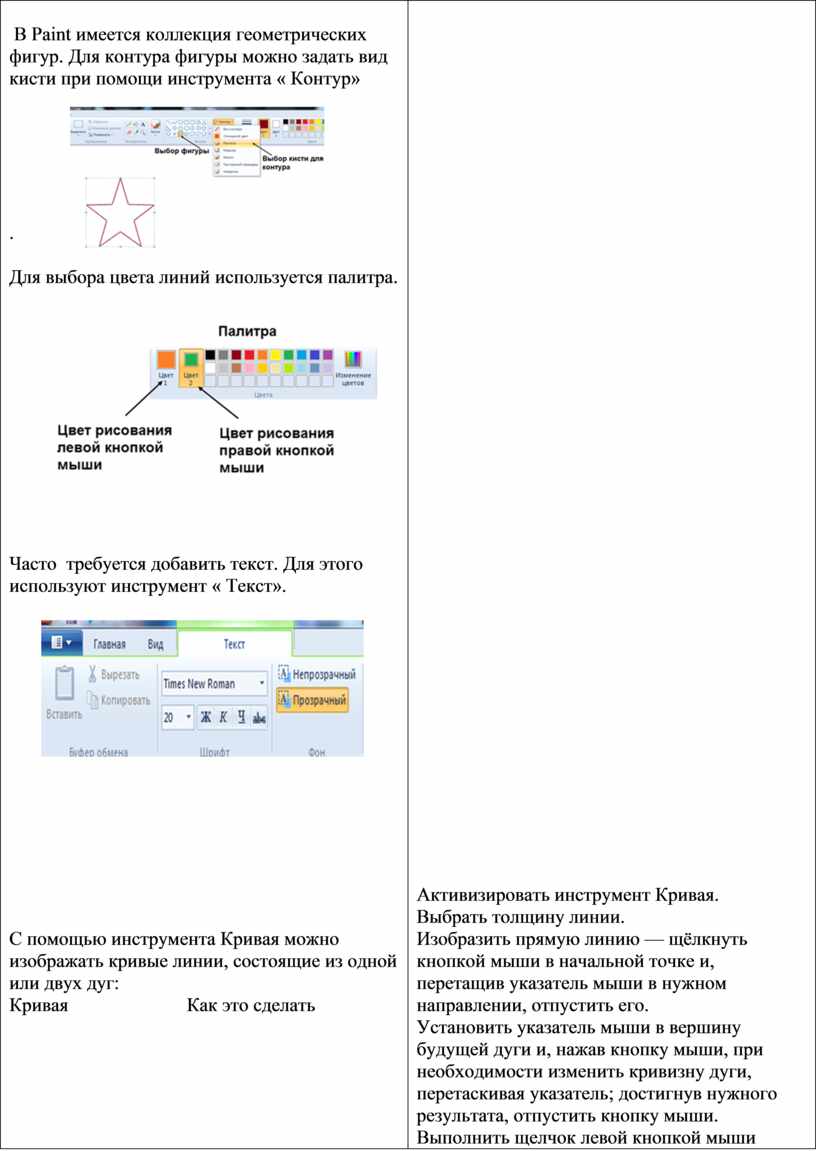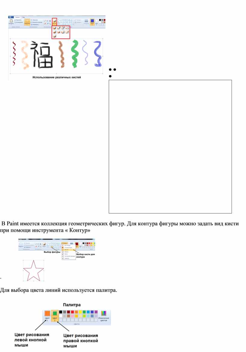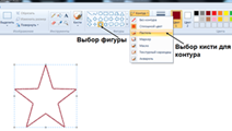 В Paint имеется коллекция геометрических фигур. Для контура фигуры можно задать вид кисти при помощи инструмента « Контур»