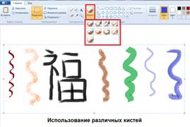Кроме инструмента « Карандаш», для создания линий предусмотрен инструмент «Кисти». Примеры линий, нарисованных различными кистями.