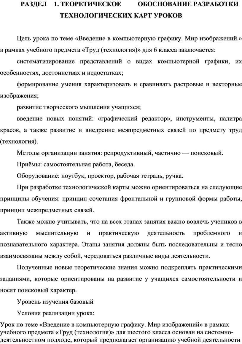 РАЗДЕЛ 1. ТЕОРЕТИЧЕСКОЕ ОБОСНОВАНИЕ РАЗРАБОТКИ ТЕХНОЛОГИЧЕСКИХ КАРТ УРОКОВ