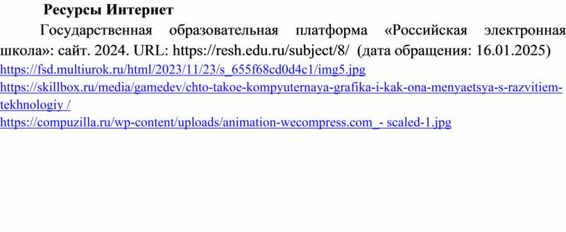 Государственная образовательная платформа «Российская электронная школа»: сайт. 2024. URL: https://resh.edu.ru/subject/8/ (дата обращения: 16.01.2025)