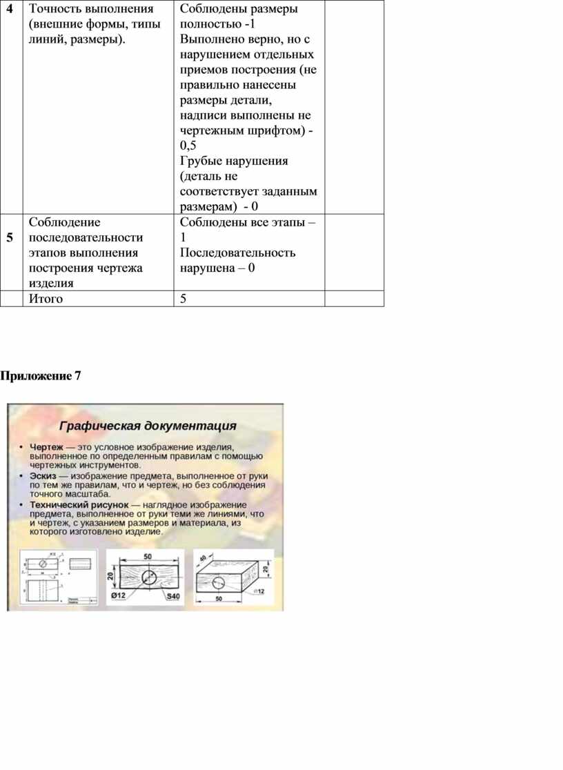 Точность выполнения (внешние формы, типы линий, размеры). |