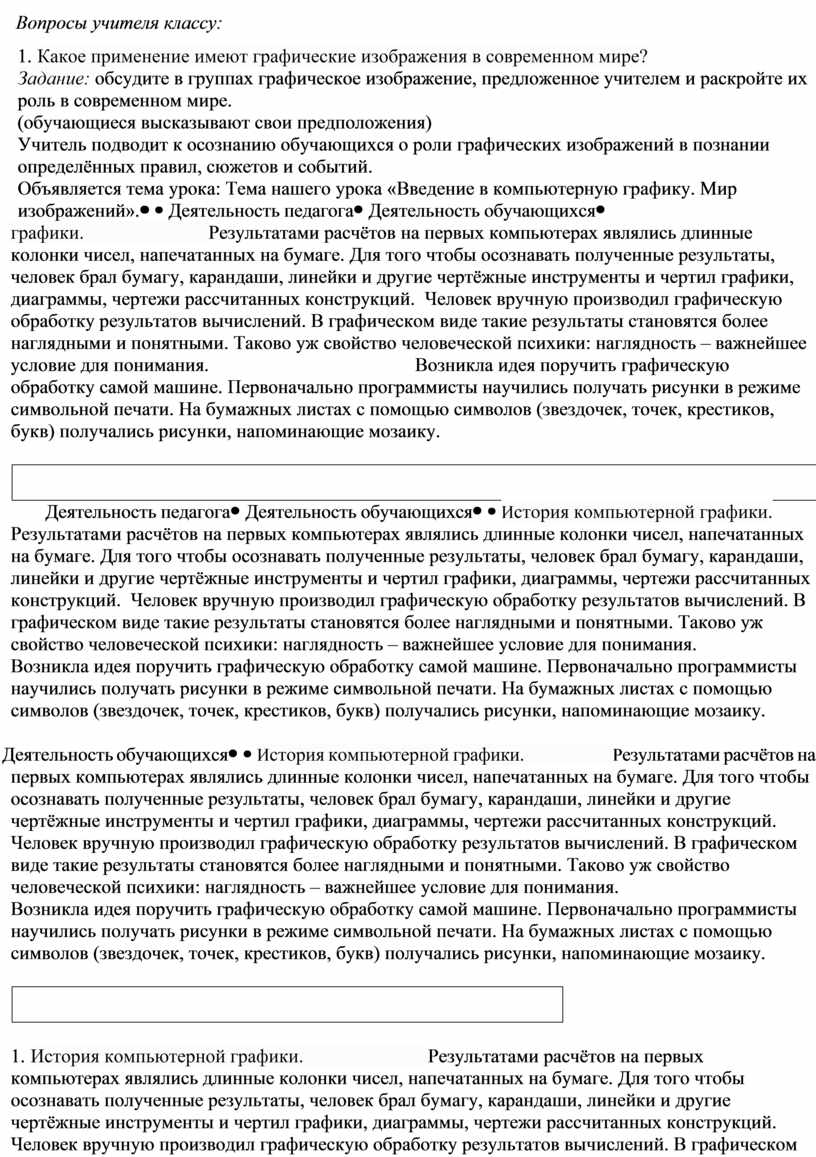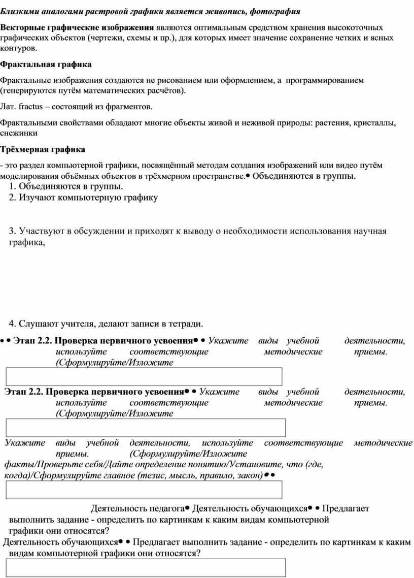 2.1. Технологическая карта урока по теме «Введение в компьютерную графику. Мир изображений»