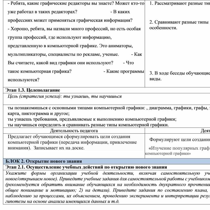 2.1. Технологическая карта урока по теме «Введение в компьютерную графику. Мир изображений.» |