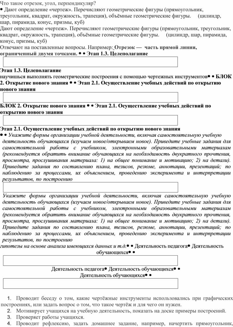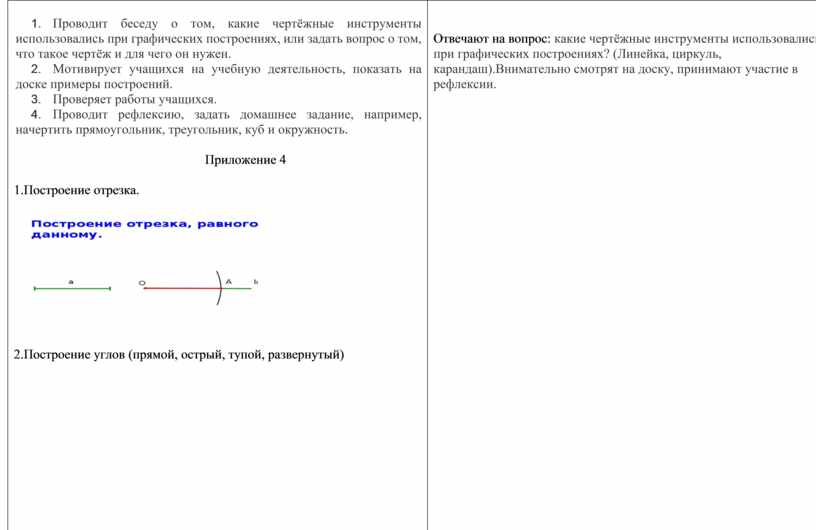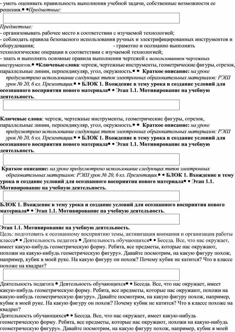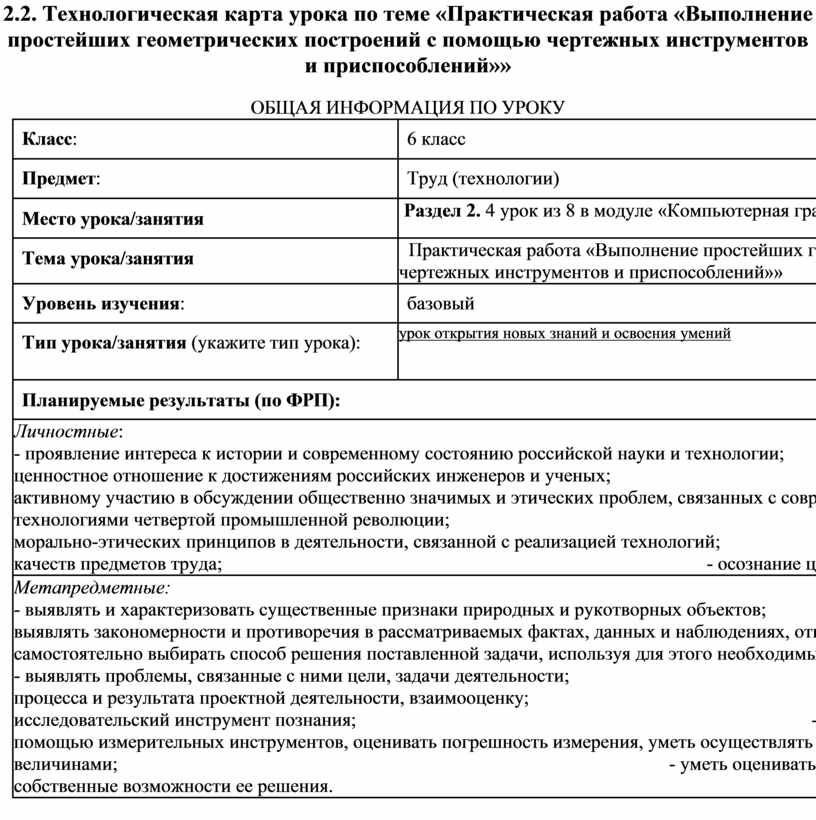 2.2. Технологическая карта урока по теме «Практическая работа «Выполнение простейших геометрических построений с помощью чертежных инструментов и приспособлений» |