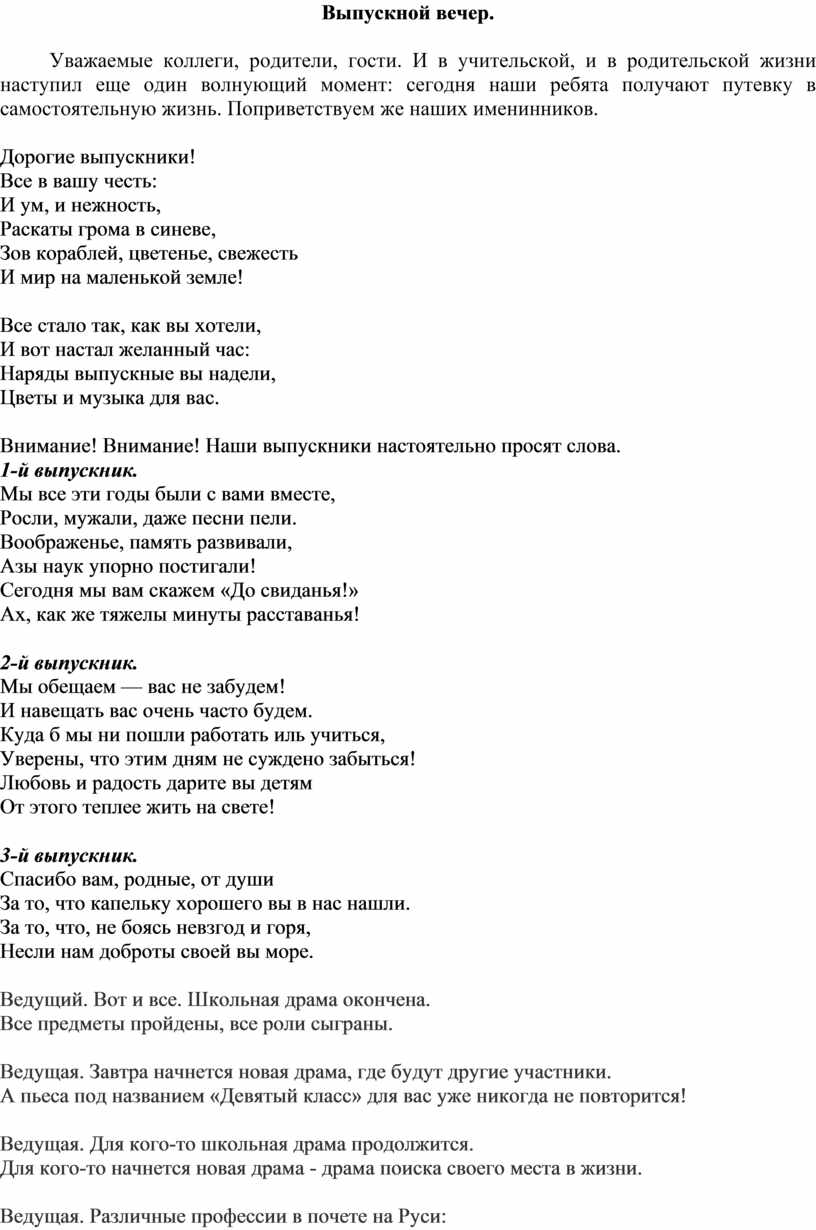 Ведущий. А сегодня...А сегодня у нас бал. Бал выпускной для девятого класса!