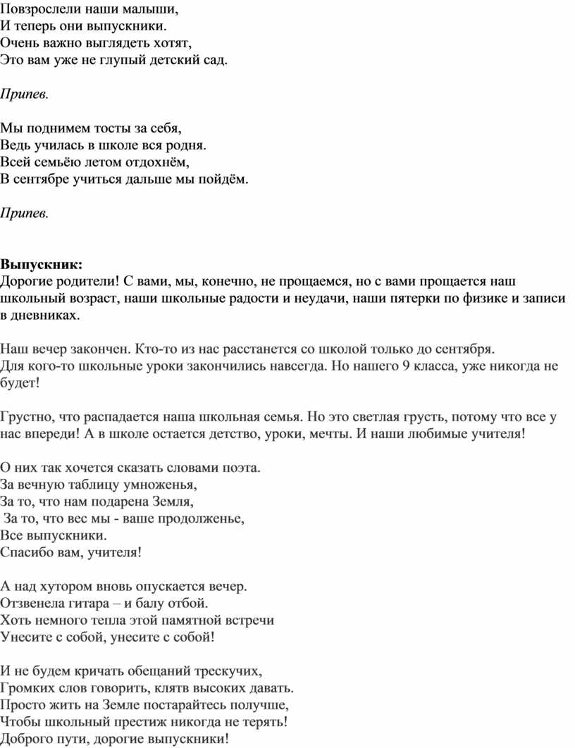 Дорогие родители! С вами, мы, конечно, не прощаемся, но с вами прощается