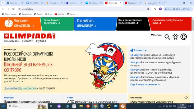 Ресурс перечневых олимпиад (сайт Олимпиада ру)