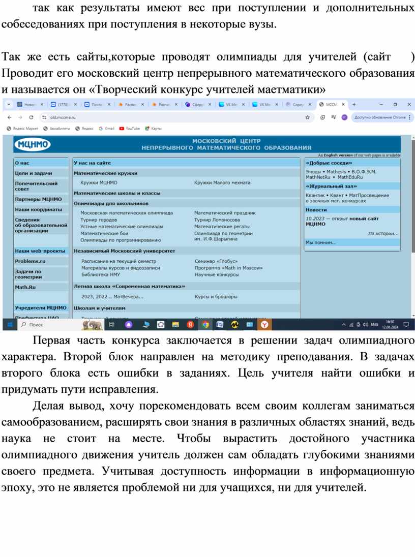 Так же есть сайты,которые проводят олимпиады для учителей (сайт ) Проводит его московский центр непрерывного математического образования и называется он «Творческий конкурс учителей маетматики»