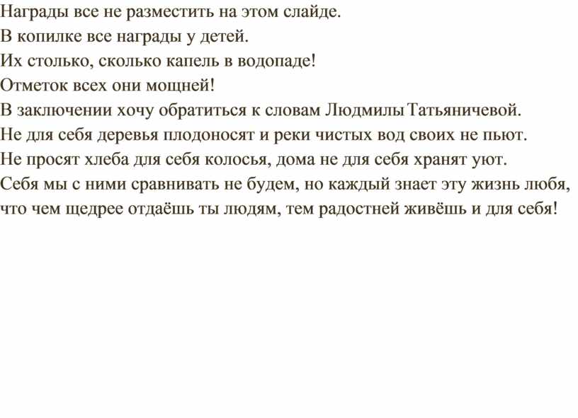В заключении хочу обратиться к словам Людмилы Татьяничевой.