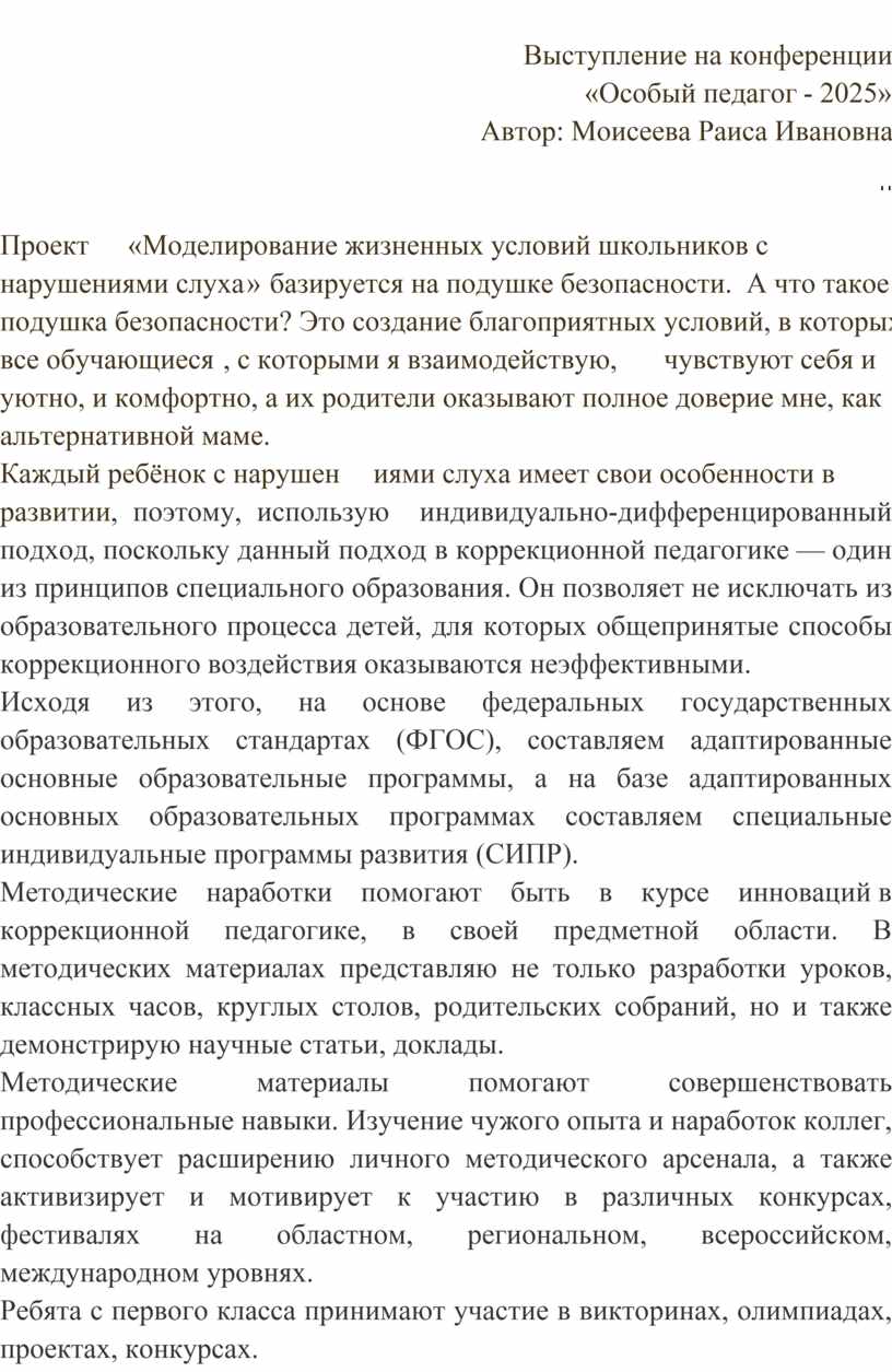 Проект «Моделирование жизненных условий школьников с нарушениями слуха» базируется на подушке безопасности. А что такое подушка безопасности? Это создание благоприятных условий, в которых все обучающиеся, с которыми я взаимодействую, чувствуют себя и уютно, и комфортно, а их родители оказывают полное доверие мне, как альтернативной маме.