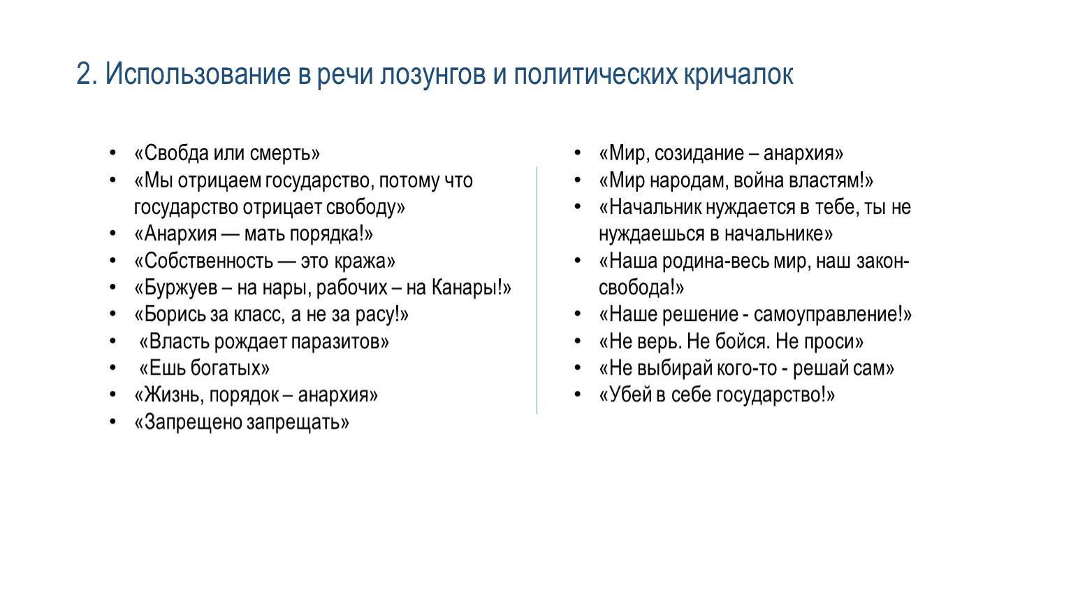 Конечные политические цели: дестабилизация социальной и политической жизни государства.