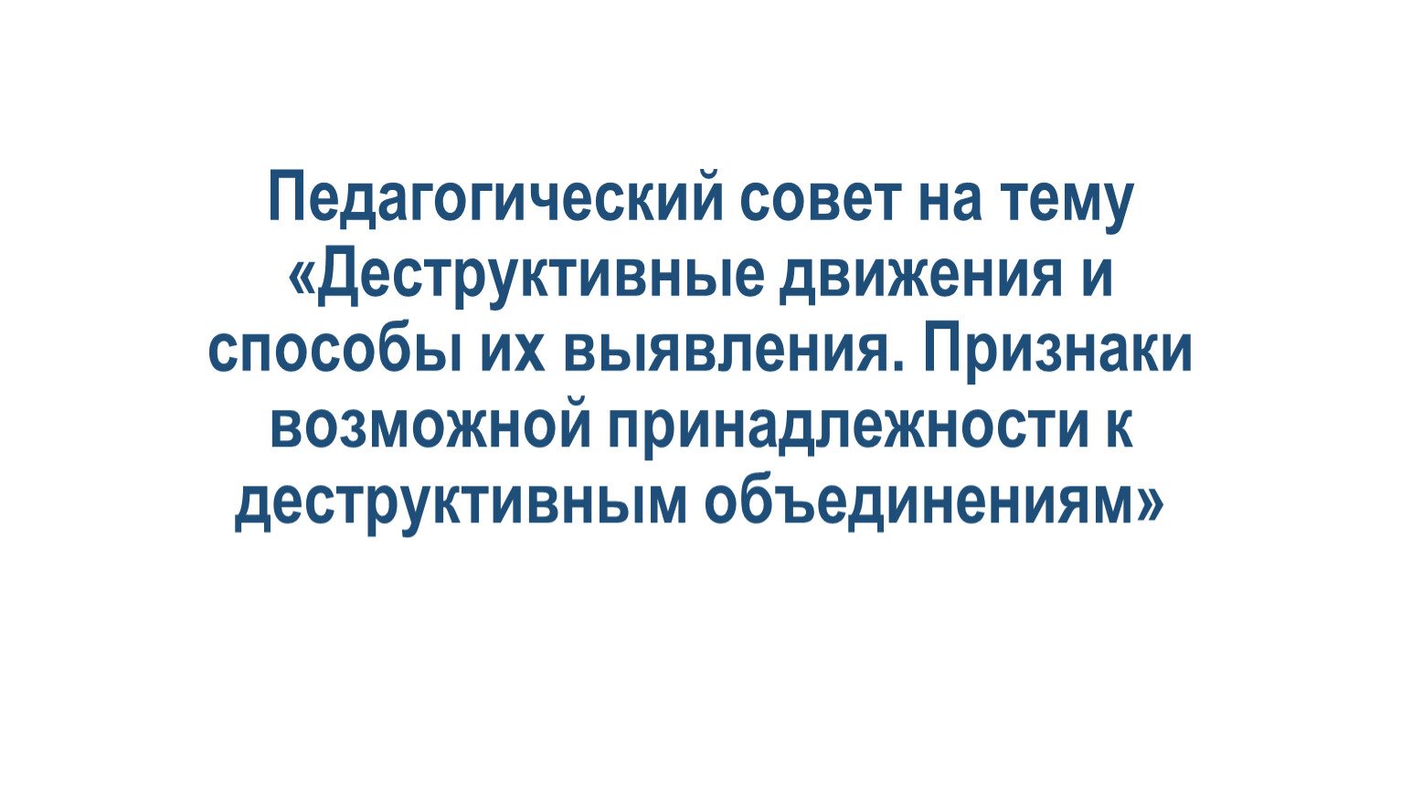 Педагогический совет на тему «Деструктивные движения и способы их выявления. Признаки возможной принадлежности к деструктивным объединениям»