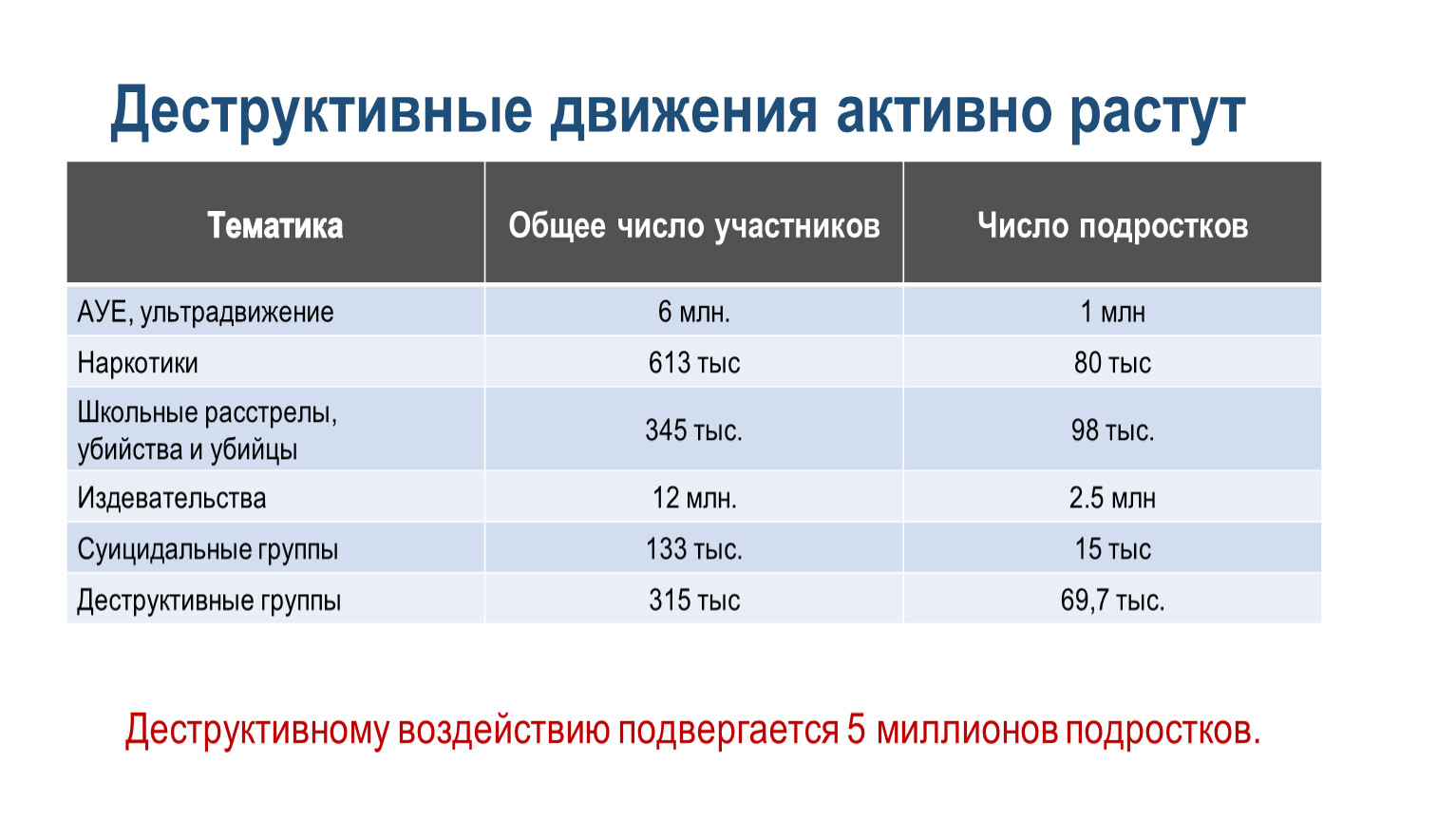 Деструктивному воздействию подвергается 5 миллионов подростков.
