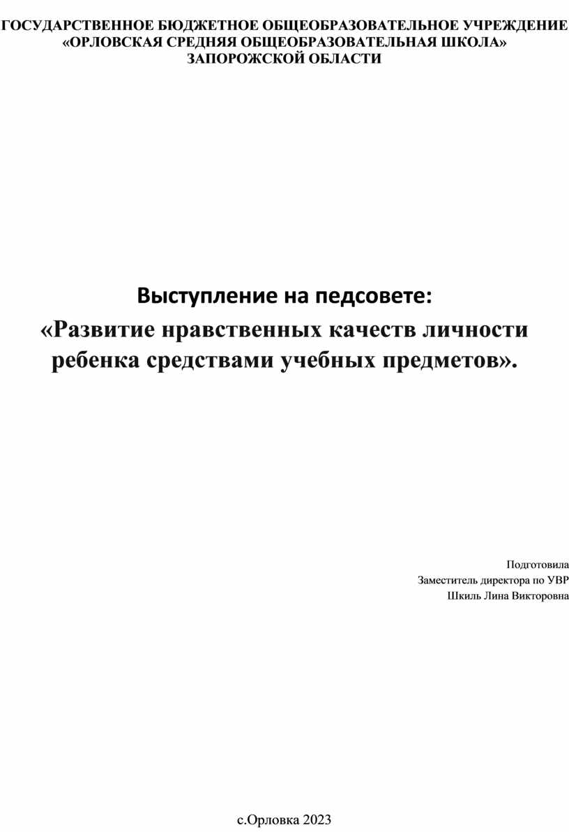 Доклад на тему: «Развитие нравственных качеств личности ребенка средствами учебных предметов».