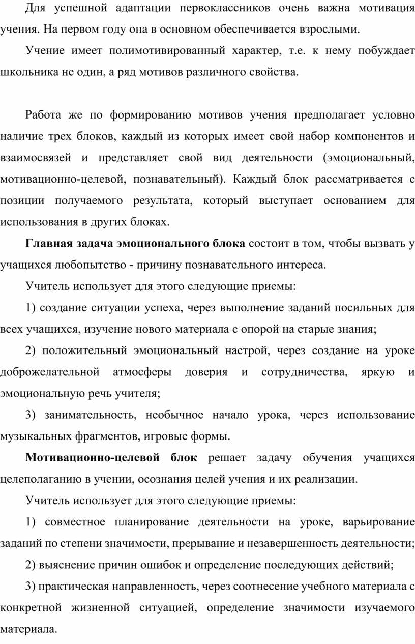 Для успешной адаптации первоклассников очень важна мотивация учения. На первом году она в основном обеспечивается взрослыми.