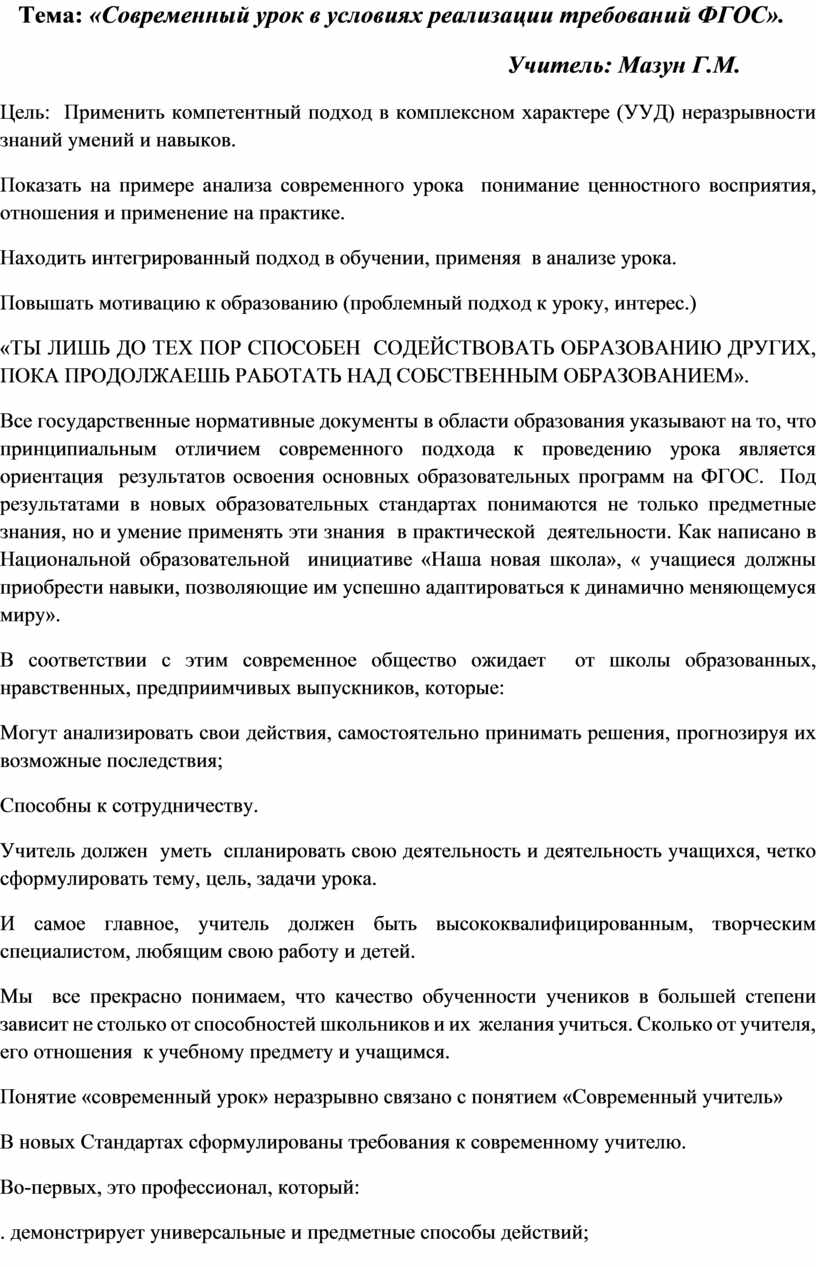Требования, предъявляемые к современному уроку.