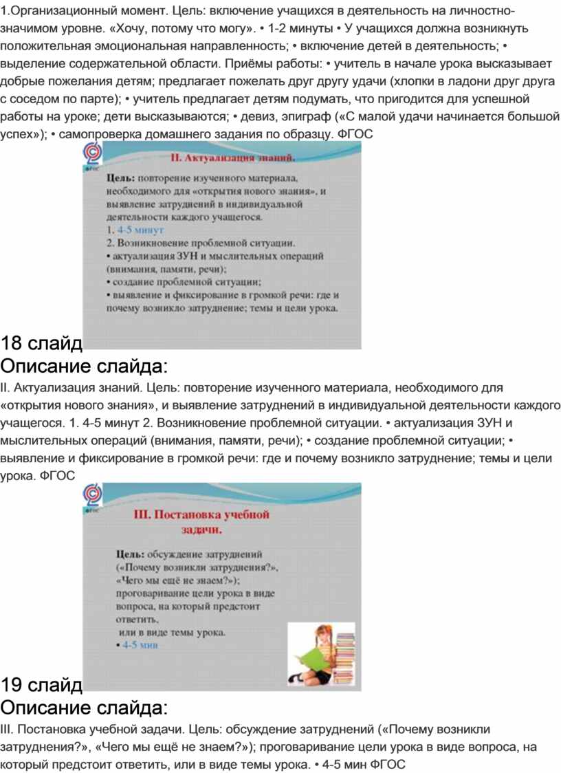 III. Постановка учебной задачи. Цель: обсуждение затруднений («Почему возникли затруднения?», «Чего мы ещё не знаем?»); проговаривание цели урока в виде вопроса, на который предстоит ответить, или в виде темы урока. • 4-5 мин ФГОС