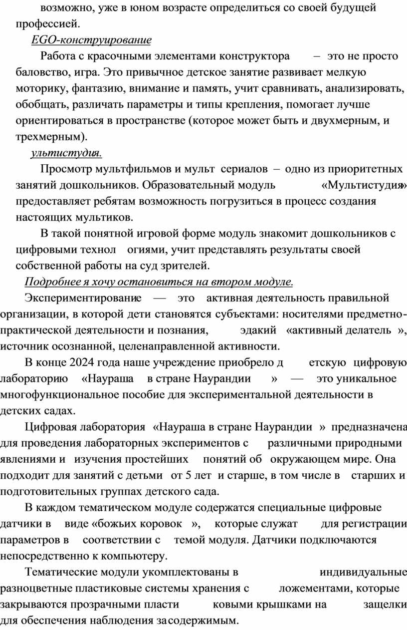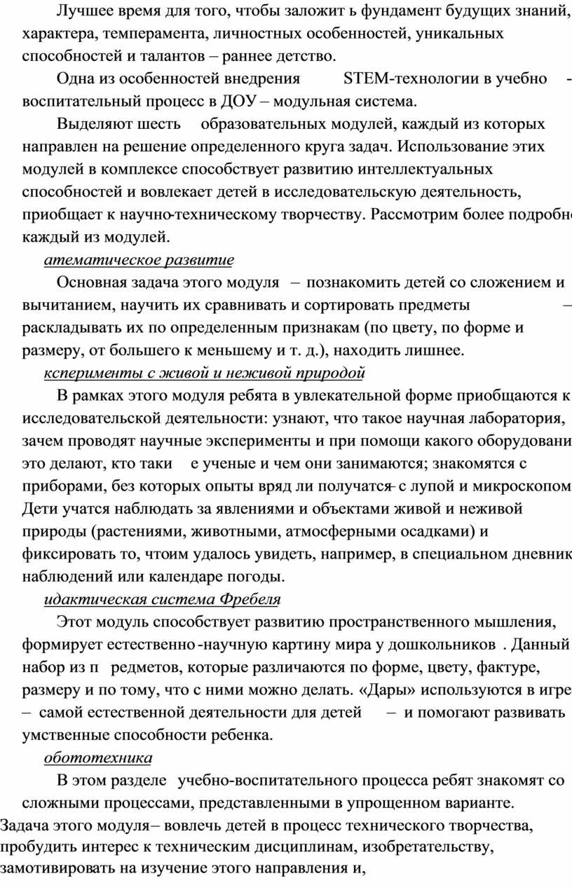 Одна из особенностей внедрения STEM-технологии в учебно-воспитательный процесс в ДОУ – модульная система.