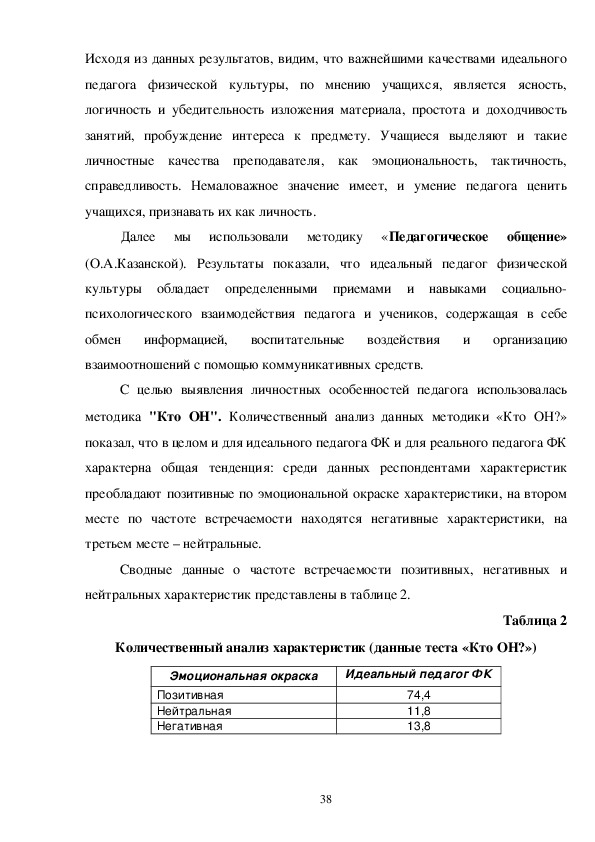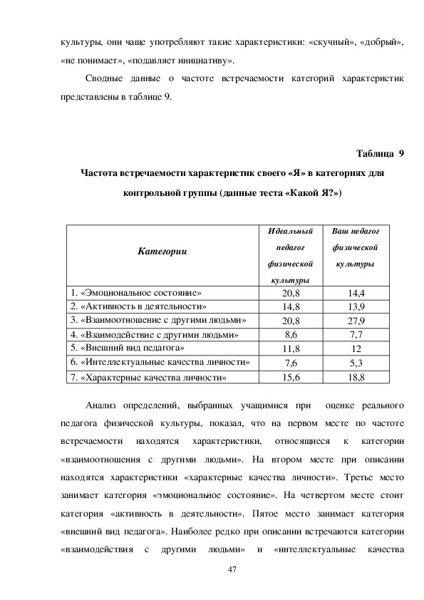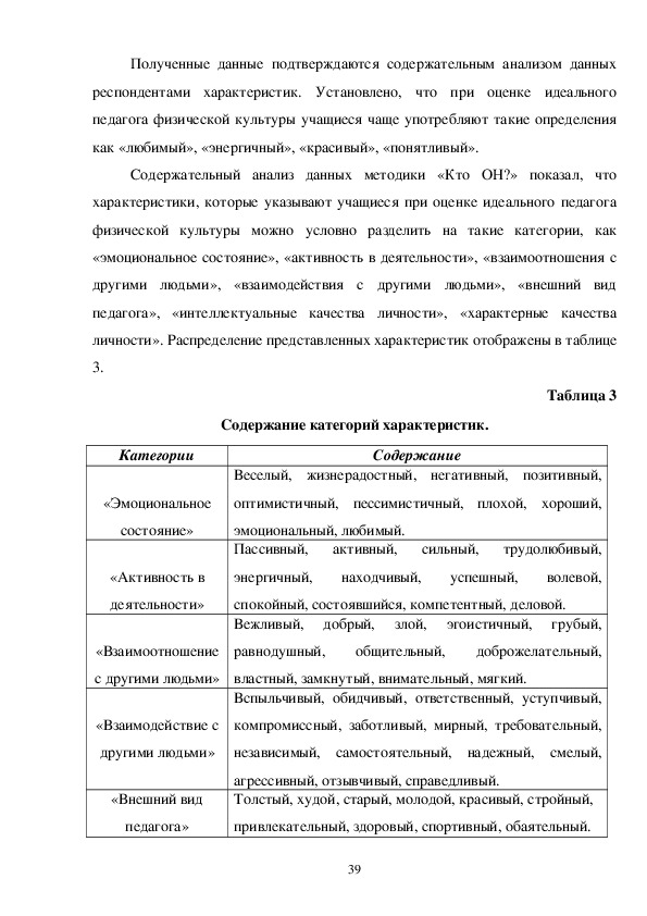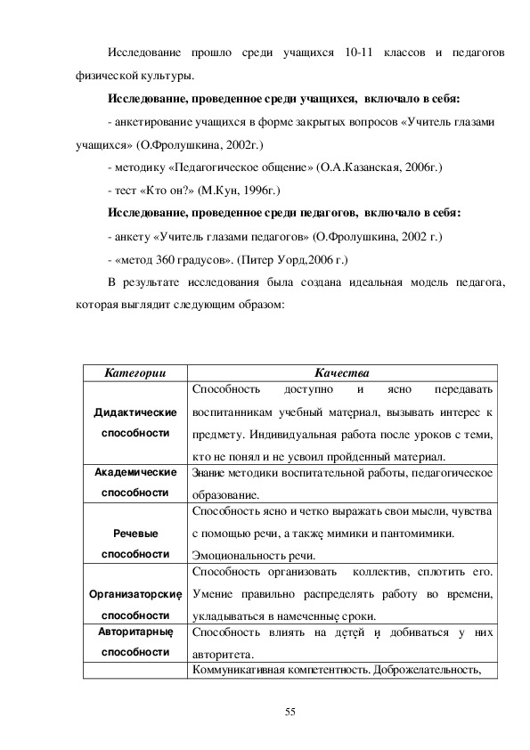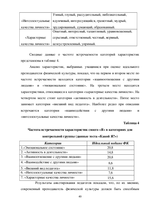 респондентами характеристик. Описывая реального педагога физической
