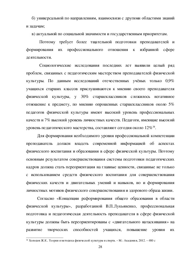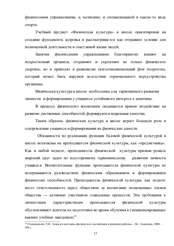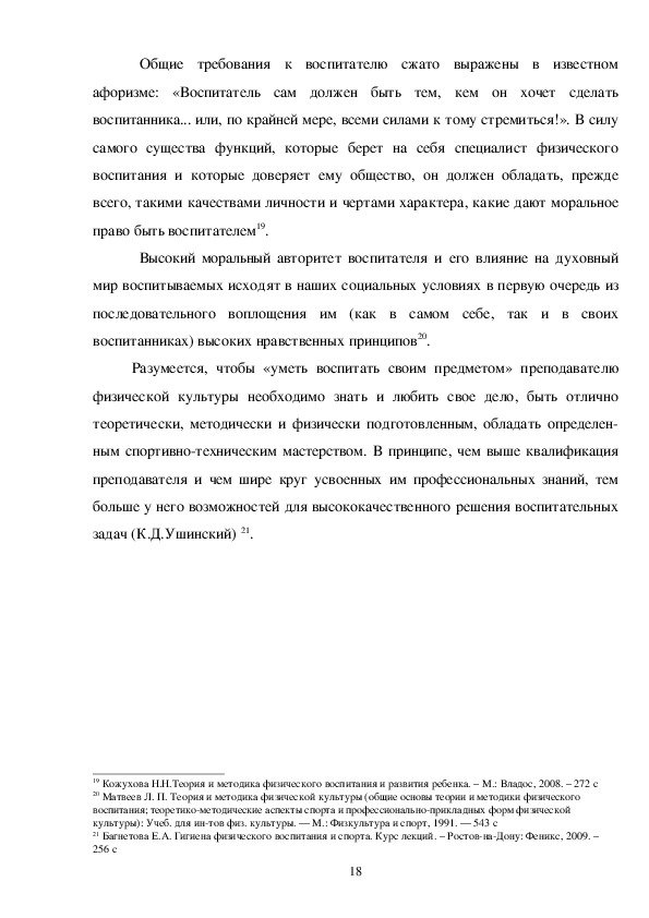 физической культуры, как педагога.