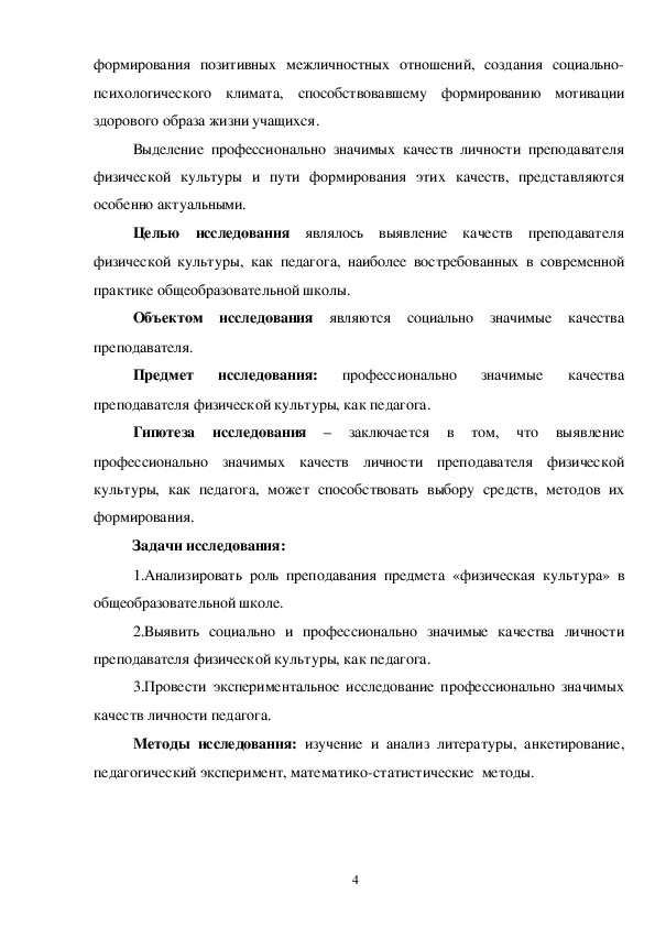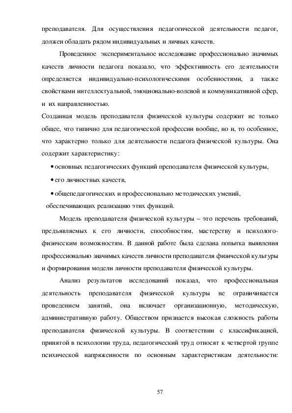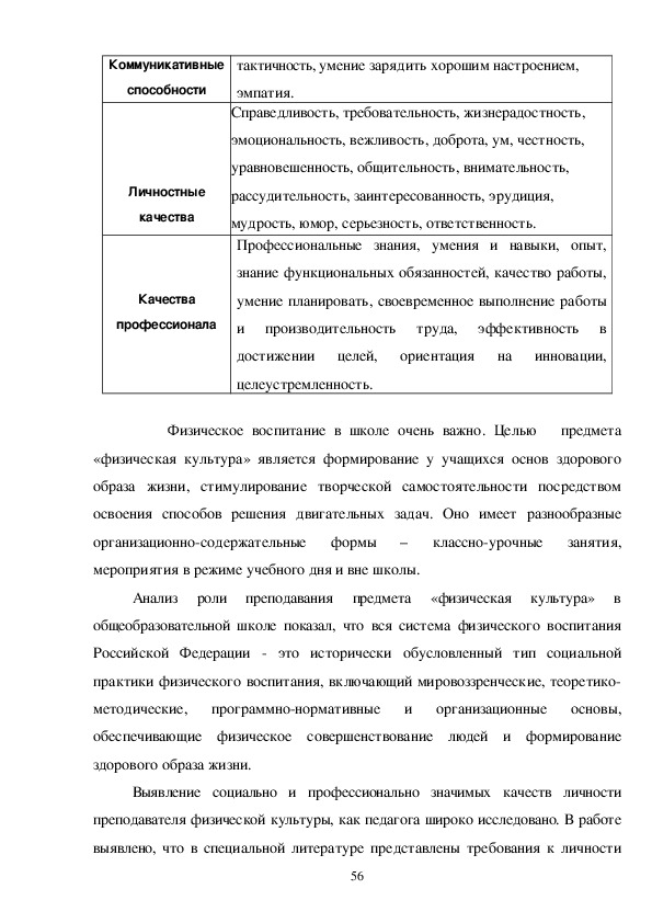 профессионально значимых качеств личности преподавателя физической