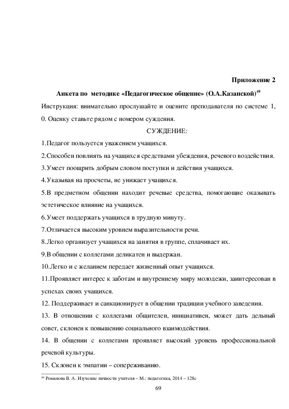 изучения личности педагога.