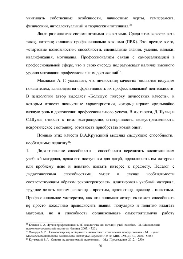 Выделение профессионально значимых качеств личности преподавателя