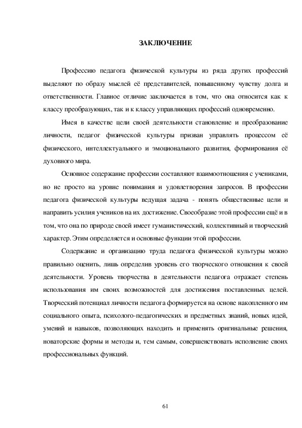 преподавателя физической культуры, как педагога.