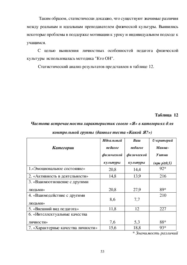 статистический анализ качеств идеального преподавателя физической культуры
