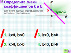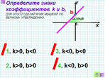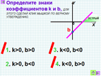 Что показывет число k? Как влияет знак коэффициента kна положение графика в системе координат? |