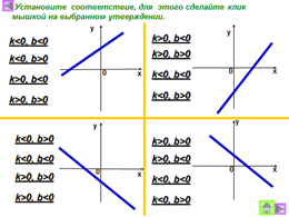 Исследование взаимного расположения графиков линейных функций от значений kиb.