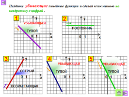 графики линейных функций, описывать их свойства при угловом коэффициенте;